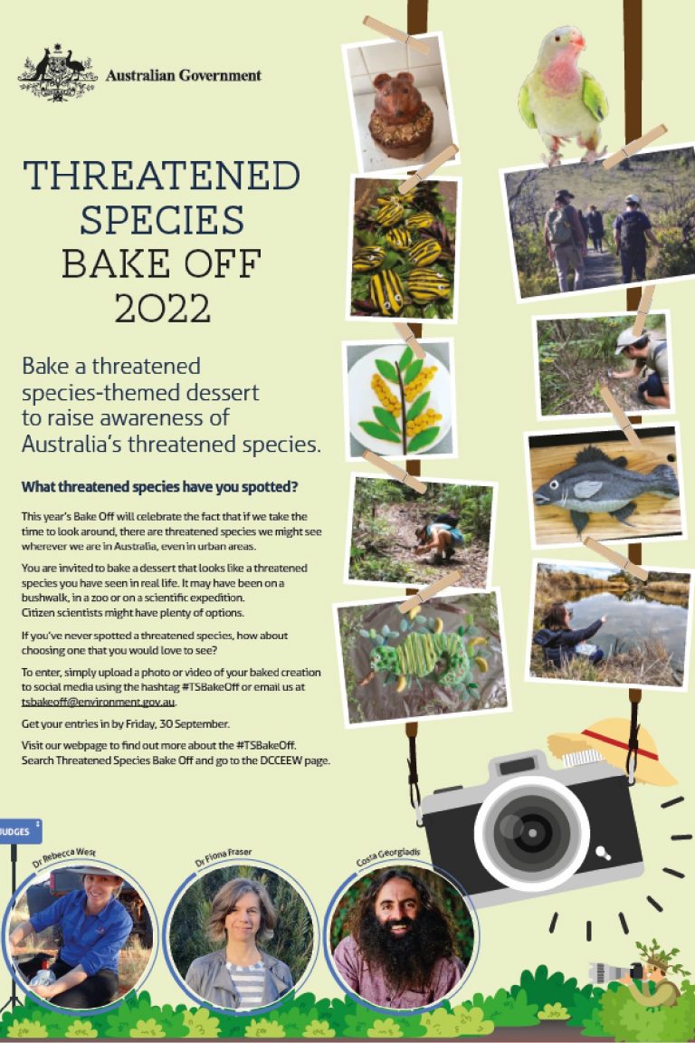 3rd August 2023. Help raise the profile of Australia's most threatened biodiversity. Now in its seventh year, the Threatened Species Bake Off hosted by the Office of the Threatened Species Commissioner (part of the Department of Climate Change, Energy, the Environment and Water) is an excellent opportunity to raise the profile of Australia.