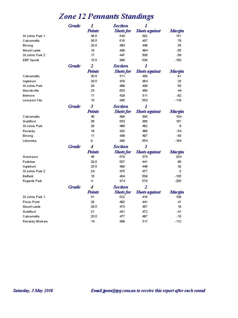 Zone 12 Pennants Standings Grade Section 1 PDF Sports
